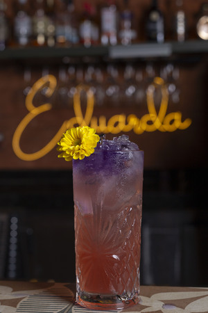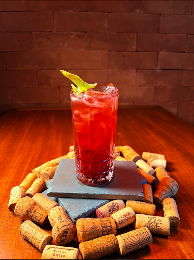 Em homenagem à mãe da chef o Madame Eduarda é um drink doce com toques cítricos. Com licor de amendoas, vodka, xarope de toranja, licor de cereja e limão taiti.