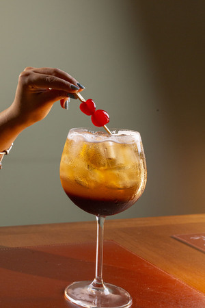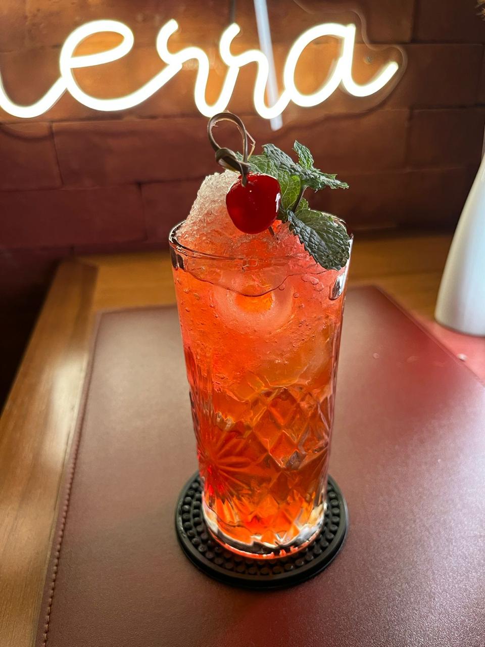 É um coquetel refrescante com uma mistura equilibrada de sabores doces e frutados. A bebida é preparada com RedBull de melancia xarope de granadine, xarope de gengibre, agua com gás e finalizada com espuma de gengibre