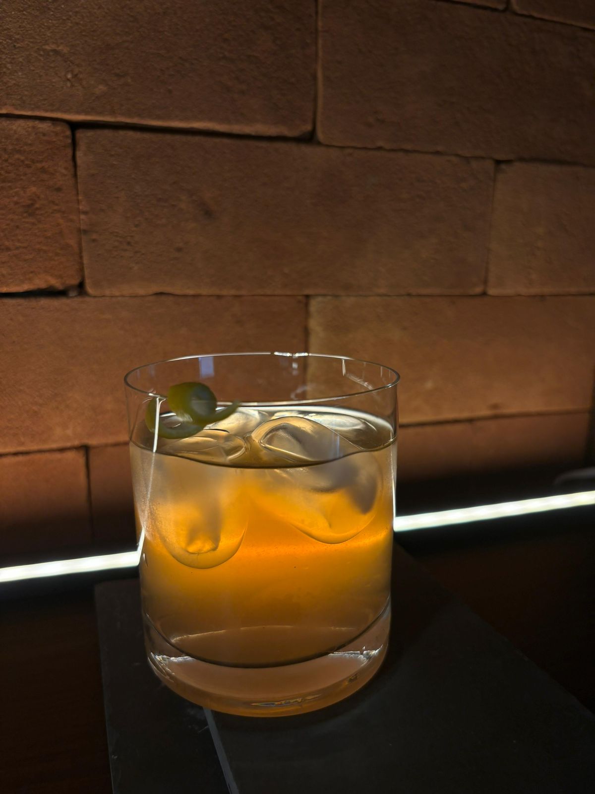 (Citrico & Herbal. Whiskey; Cordial Tartarico, Limão siciliano Espuma de Laranja; Angostura)